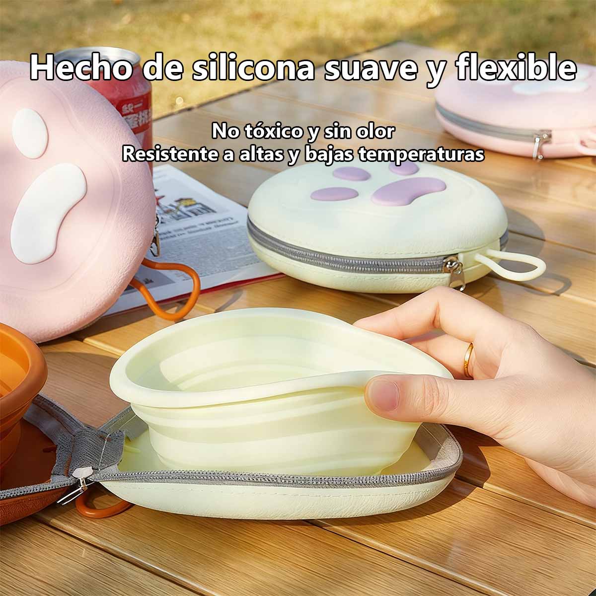 🐾 Cuenco doble con forma de pata de oso: se pliega hasta quedar plano, solo 1 cm de grosor. Guárdalo colgado en la pared o mételo en el bolsillo lateral de la mochila; camping el fin de semana sin ocupar espacio.
