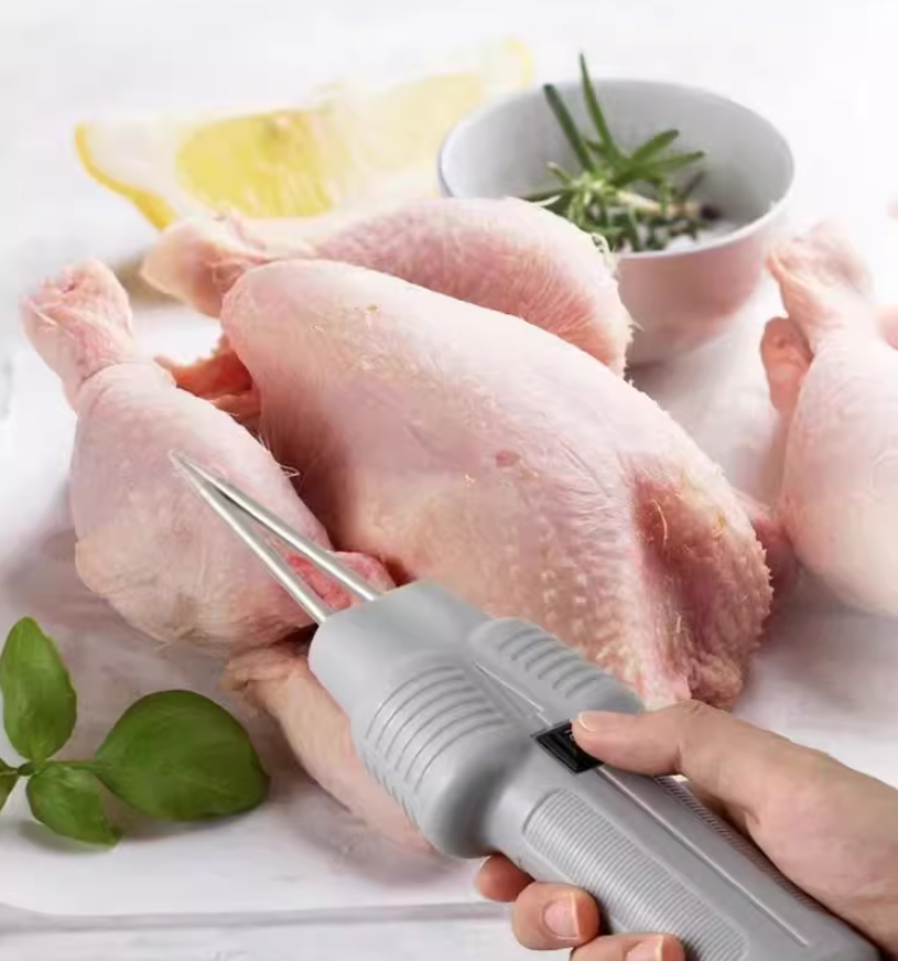Acest dispozitiv electric de smuls pene este conceput ergonomic pentru a face față cu ușurință păsărilor precum găini, rațe sau gâște. Ușor de utilizat, rapid și sigur pentru piele, este ideal atât pentru bucătăriile casnice, cât și pentru utilizarea semi-profesională.
