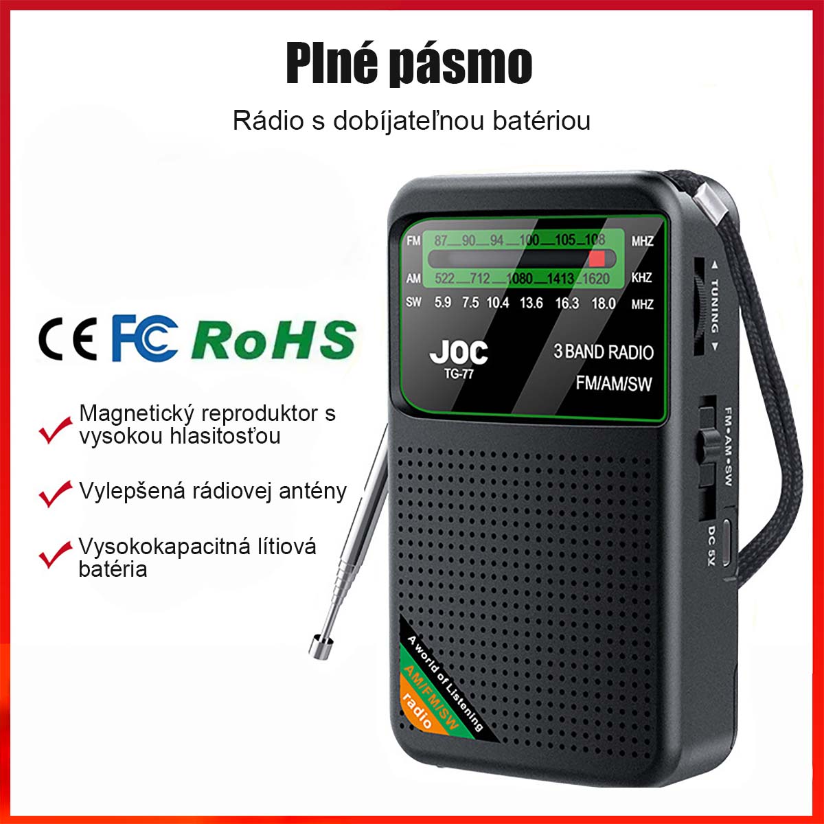 📻 Príjem všetkých pásiem: FM/AM/SW v jednom. Školské vysielanie, medzinárodné stanice aj krátkovlnné frekvencie – jedna radiostanica na počúvanie celého sveta.