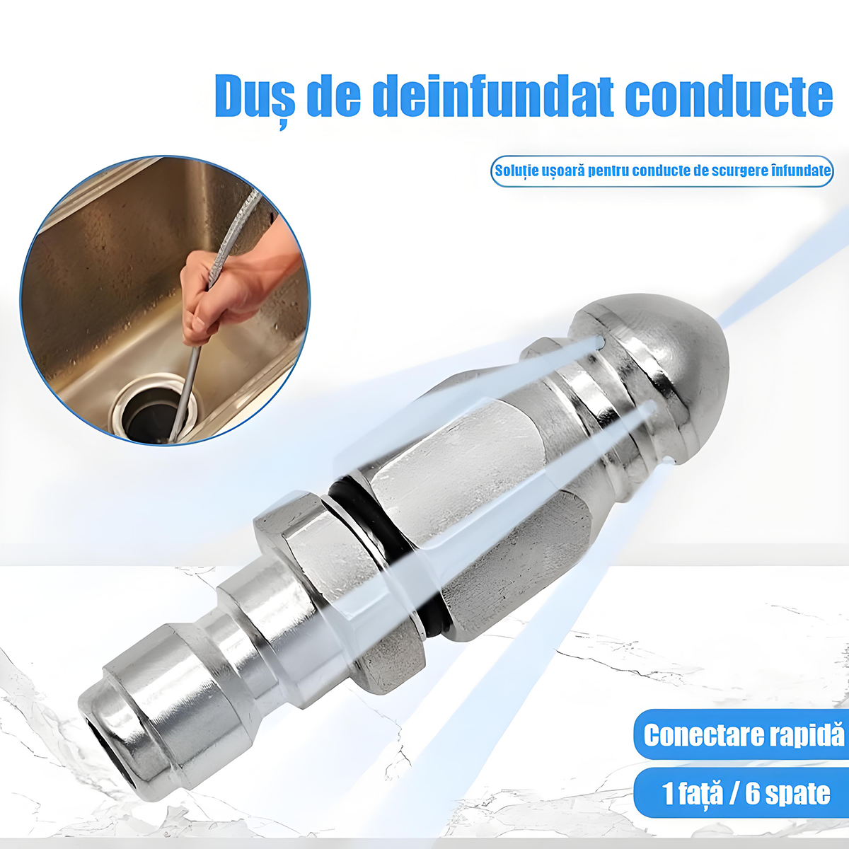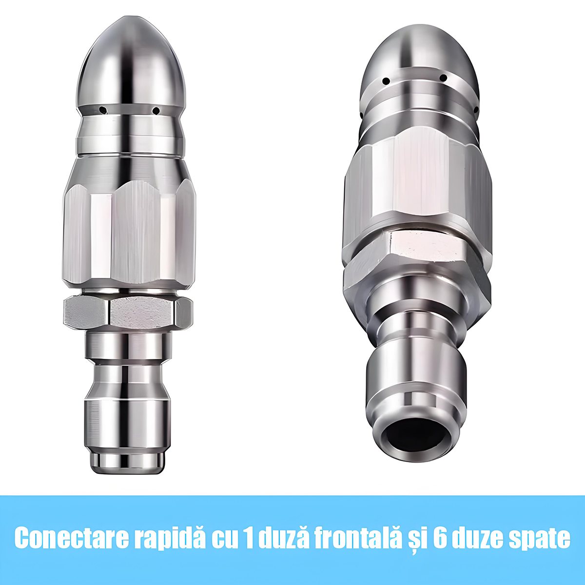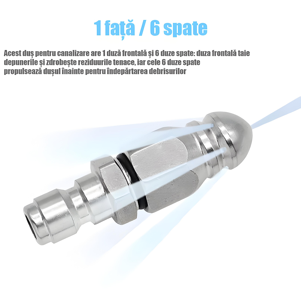 Cap de curățare și deblocare pentru țevi de canalizare, din oțel inoxidabil, cu duză de înaltă presiune – „șobolan de apă”