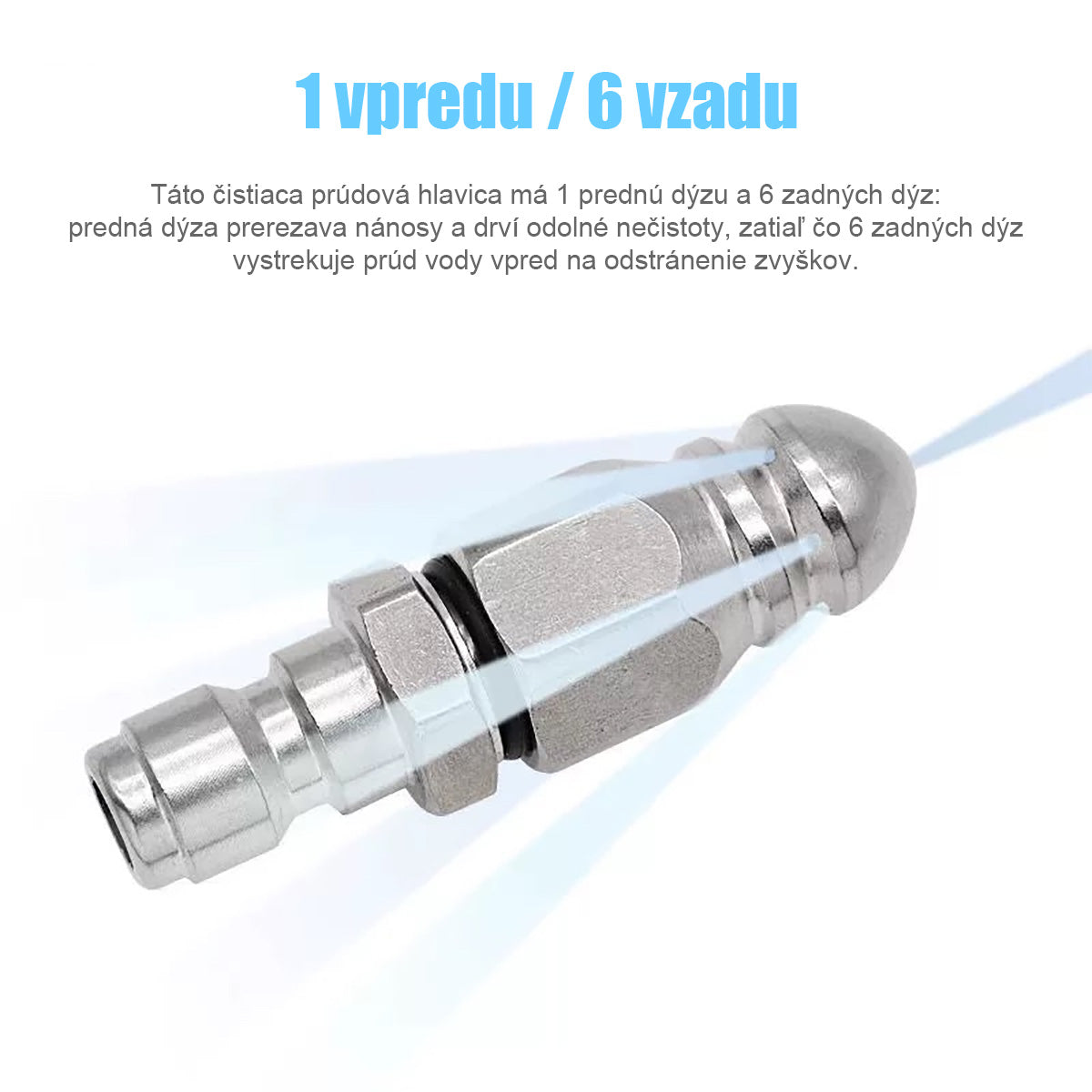 🔧 Predný 1, zadný 6 trysiek – 360° silné čistenie, potrubie okamžite priepustné
